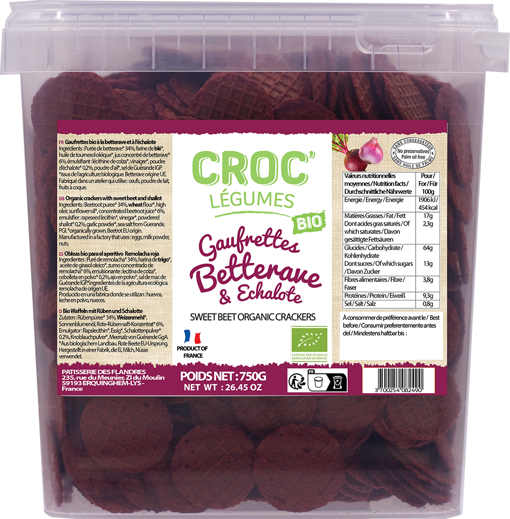 Gaufrettes bio végétales riches en légumes, à consommer en toute occasion, nature ou en dip. Adaptées au régime vegan.